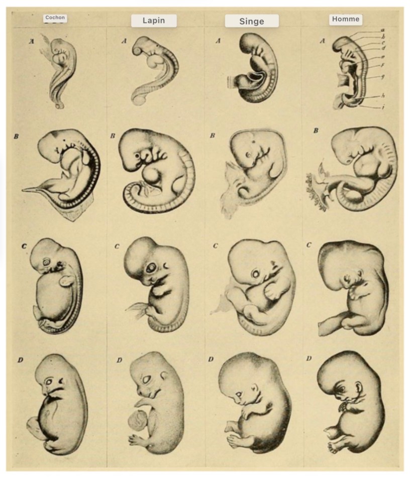 Au 19e siècle, le biologiste allemand Ernst Haeckel formula une hypothèse audacieuse : “l’ontogénèse récapitule la phylogénèse”. En d’autres termes, le développement embryonnaire reproduirait, en accéléré, toute l’histoire de l’évolution des espèces.